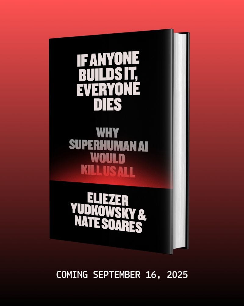 Ladies and gentlemen, we are days away from the long-awaited release of Eliezer Yudkowsky and Nate Soares's new book, “If Anyone Builds It, Everyone Dies”!!!